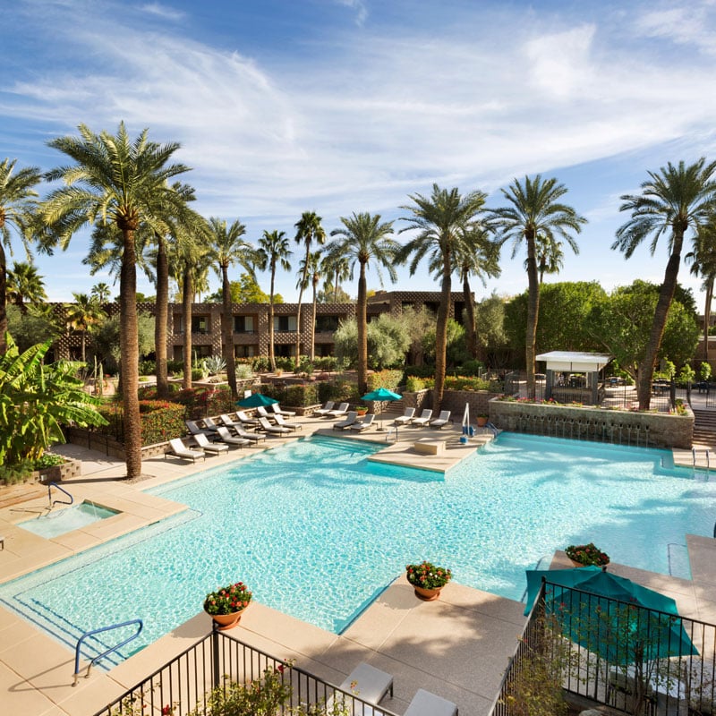 Situated on over 20 acres of beautifully landscaped grounds, DoubleTree Resort by Hilton Hotel Paradise Valley – Scottsdale offers breathtaking views of Camelback Mountain. Every room features a covered patio or balcony. Enjoy two sparkling outdoor pools, delightful dining options, and complimentary shuttle service to nearby Fashion Square Mall and Old Town Scottsdale.