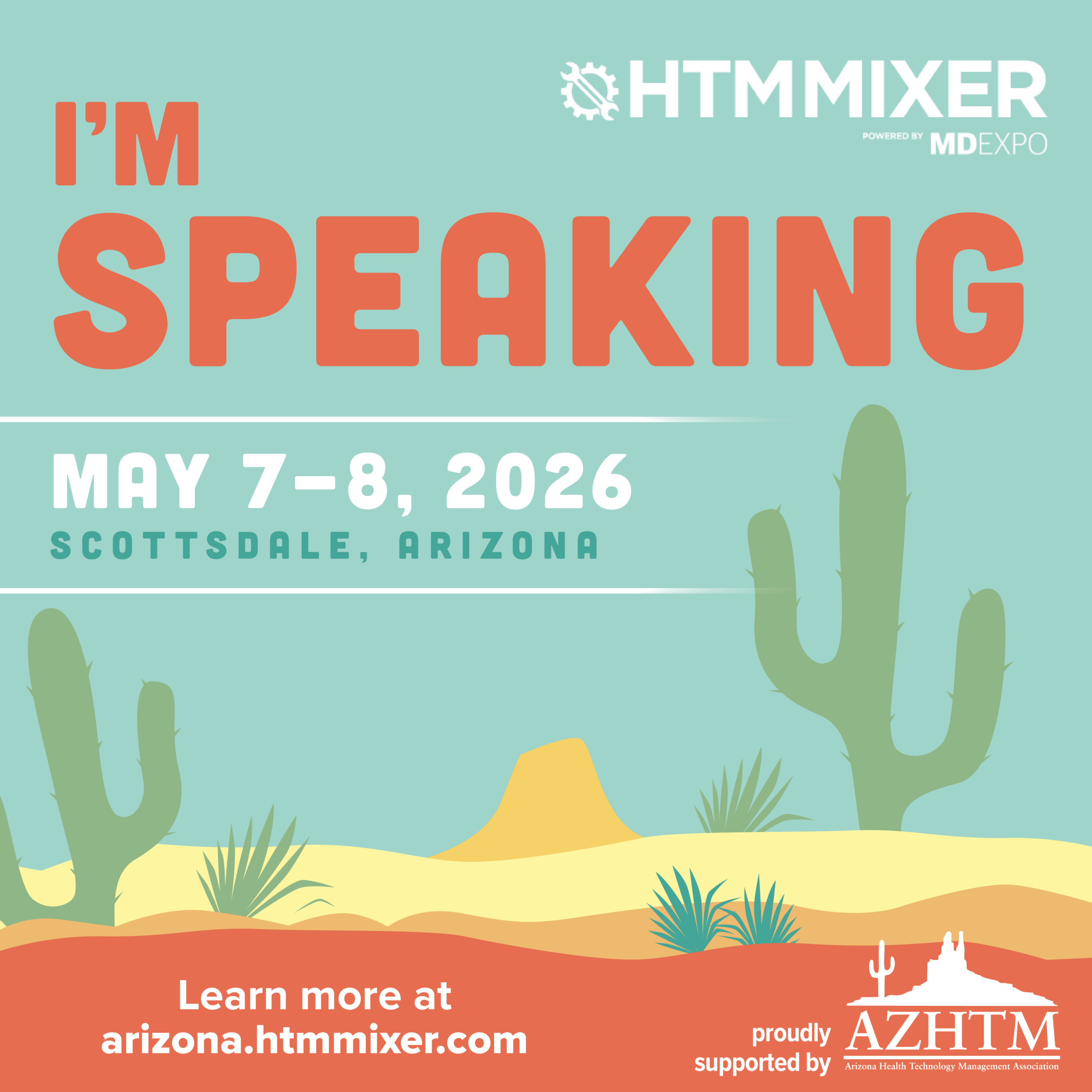 I will be presenting [insert topic] at the #HTMMixer 2026 in Scottsdale this May! Register today at https://arizona.htmmixer.com/